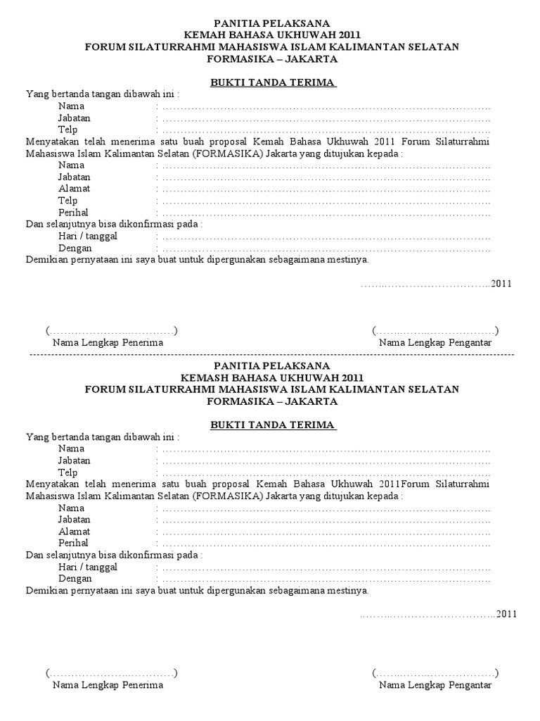 Surat tanda terima dokumen digunakan sebagai tanda bukti bahwa dokumen telah dikirimkan. Petugas yang bertanggung jawab atas pengukuran akan pergi ke lokasi dengan didampingi pemilik atau kuasanya; Bajirupa konsultan dan cv mallomo engineering. 16 makassar pada hari rabu tanggal 06 februari 2013 oleh dan diantara :1. Contoh tanda terima yang tepat dan lengkap berbagi berbagai cara.